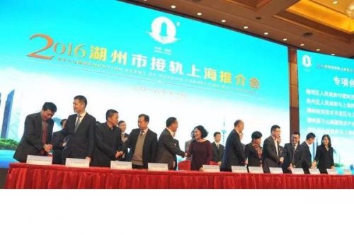 会上,副市长李建平作湖州投资环境和项目推介。湖州市政府和上海市政府发展研究中心签署了战略合作协议。湖州有关县区、平台与上海市有关平台、机构、企业签订了6项合作协议;海游天地度假城、莫干山国际影视文创小镇、芯启源产业园、华夏幸福产业新城、环保新材料产业园等24个重大项目进行了集中签约。