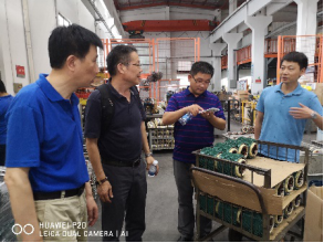 在德驱驰,公司总经理陈仙根在贵宾厅与调研组交流了企业现状、企业警策文、企业愿景、使命等,并陪同参观了企业生产重地及培训基地;王寅、宁银行分别就电机控制器的研究、电机本体的研究向陈仙根进行了介绍,赵朝会介绍了我校在《基于中国芯的宽禁带半导体器件BLDC高速控制器》、《混合励磁电机》、《铜转子异步电机》等方面的研究情况。