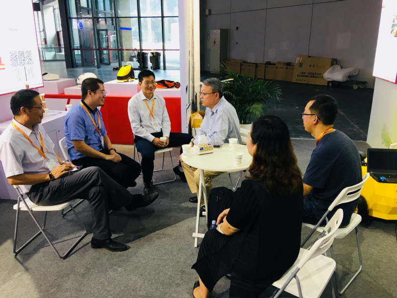 校党委书记孙培雷一早便亲临展台,参观期间同项目负责人围桌而坐探讨科研工作。副校长陈东辉也在开展第一天上午抵达展会现场指导工作。
