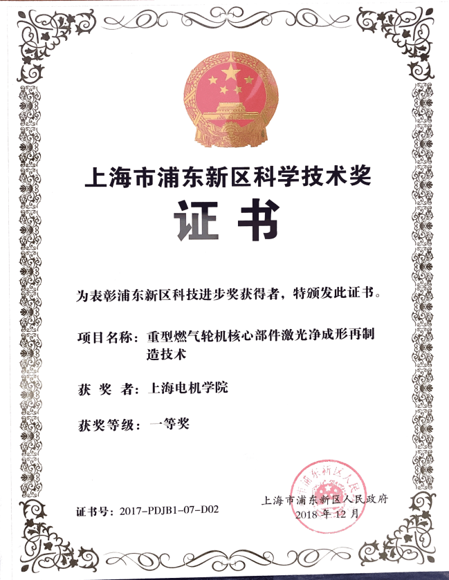 12月19日,上海浦东新区科学技术奖励大会在浦东新区办公中心举行,材料学院李雷老师以我校第二单位、第二完成人申报的“重型燃气轮机核心部件激光净成形再制造技术”项目获得2017年度上海市浦东新区科技进步奖一等奖。这是我校首次在浦东新区科学技术奖获得的荣誉。