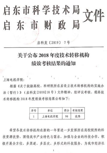 3月28日,启东市科技局对在启技术转移机构进行了2018年度绩效考核考核,根据《关于鼓励高校、科研院所在启设立技术转移机构 的实施办法(暂行)》,经过评议考核,我校启东技术转移工作站被评为2018年度“优秀”技术转移机构,陈云霞老师个人获得“优秀站长”称号。
