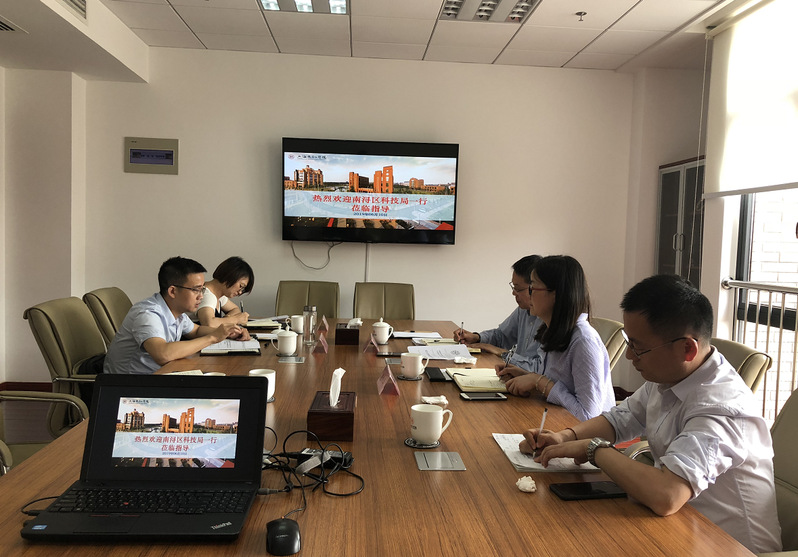 2019年6月10日下午,湖州市南浔区科技局副局长曹军军、科技局产业发展科科长陈莉莉、沪浔协同科技大市场相关负责人一行来访我校,就校地合作、校企合作进行洽谈与交流。科技处处长赵朝会、副处长陈柳华接待来访客人。