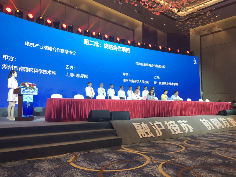 在推进上,上海电机学院就电机产业战略合作与南浔科技局签订了合作协议。