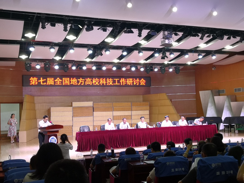 6月27-29日,由全国地方高校科技处长联谊会主办的“第七届全国地方高校科技工作研讨会”在湖南岳阳湖南理工学院召开,来自北京工业大学、澳门大学、南方科技大学、上海师范大学、上海应用技术大学等全国119所高校的科技人员参加了会议。会议围绕《加快科技评价机制改革,助推地方高校双一流建设》主题展开讨论。会议由北京工业大学科研院副院长杨登才主持。我校科技处赵朝会、曹峰华参加了此次会议。