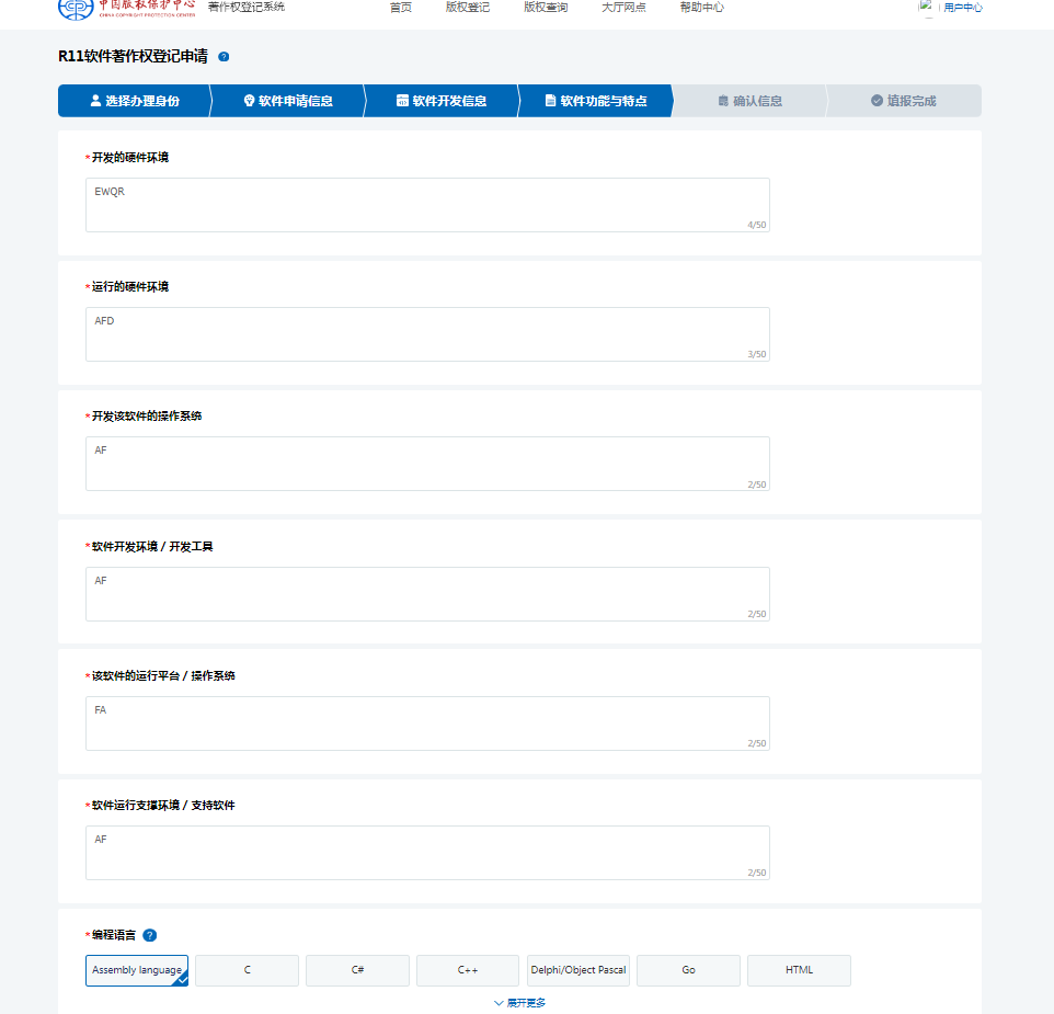 4、选择需要申请的模块,本例以发明人申请“计算机软著”为例