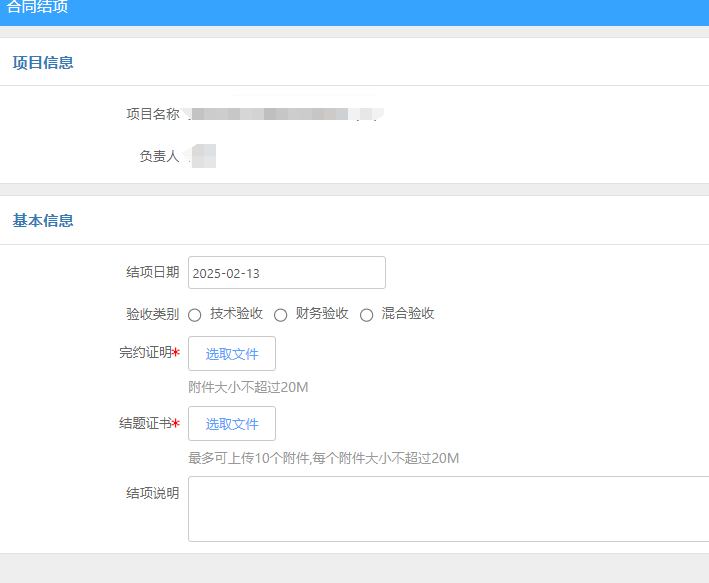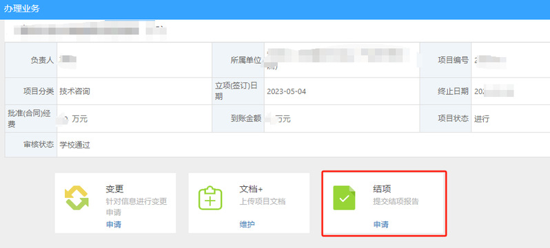 横向项目合同执行完毕后一个月内,项目负责人须在科研系统中申请项目结题。